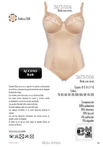 Cómodo Body con aros y copa de tres partes confeccionado Copas: B-C-D-E-F-G